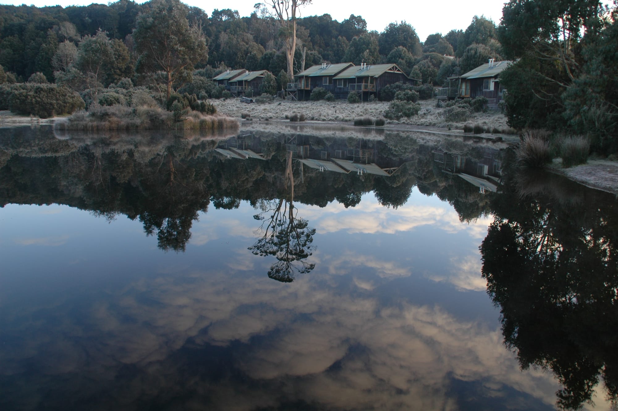 The next morning we walked down to the main lodge to get breakfast, the walk was down a little footpath and it was icey cold, we came across a lake which had a few lodges around it for this fantastic view –