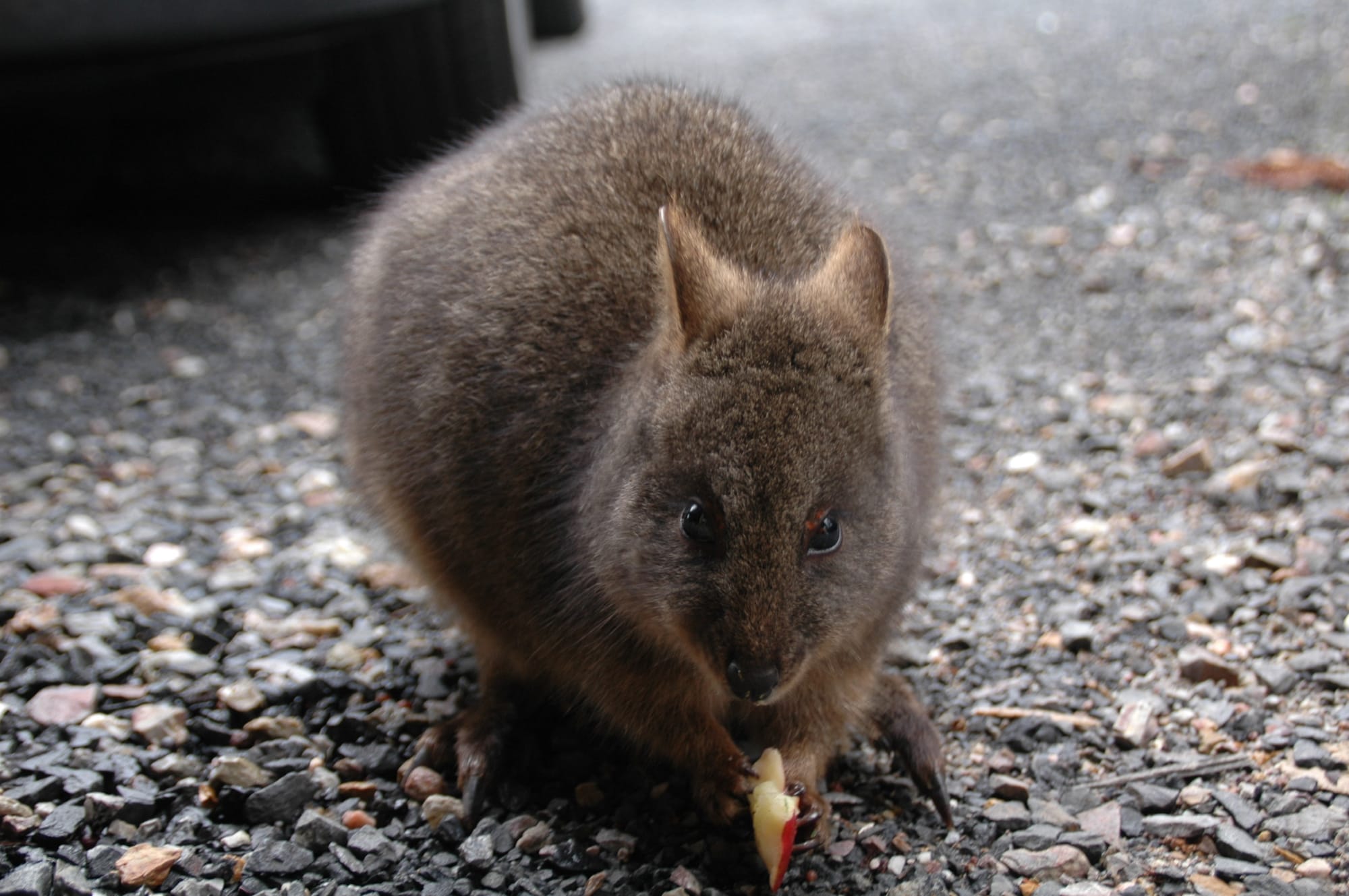 That evening we went on a night spotting tour in a 4WD which probably had the worst window visibility vehicle I’d ever been in, however it was still good fun to drive around with an informed national park driver and shine bright lights into these little creatures eyes (they didn’t seem to mind but I can’t imagine spotlights shined onto nocturnal animals is very good for them). We saw another Quoll which was very lucky apparently and loads more pademelons. We then saw a wombat with a joey and another type of kangaroo different from the pademelon.