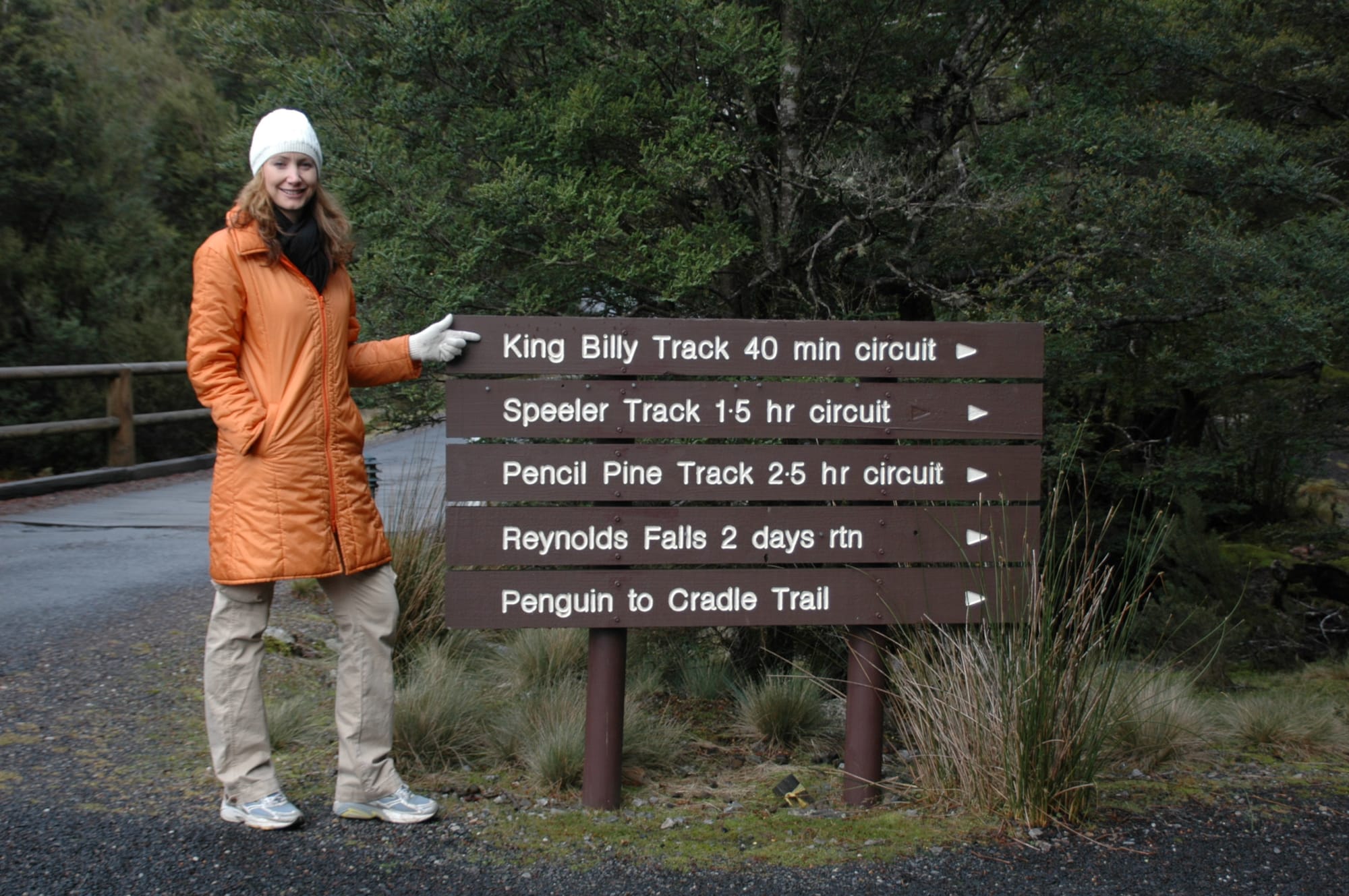 On our last day we did the shorter King Billy Track walk which took only 40 minutes and I found out that King Billy wasn’t just the name of our room type but actually a type of pine. Here’s Amy with the sign –