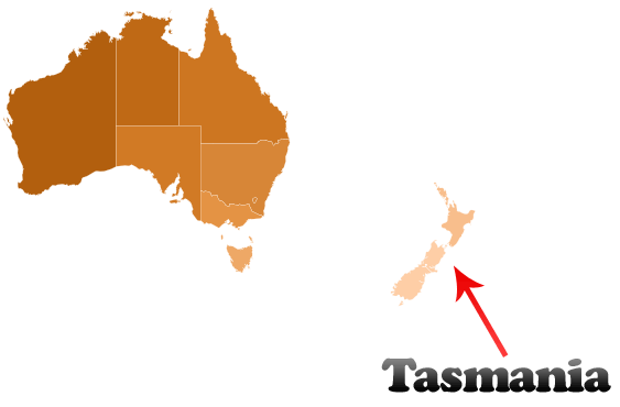 Last weekend Amy and I got cheap flights to Tasmania. Where is Tasmania? You may ask. It is a small island located in the bottom right hand corner of Australia as you look at in on a map. I’ve added a picture of Australia and a reference for locating Tasmania below –