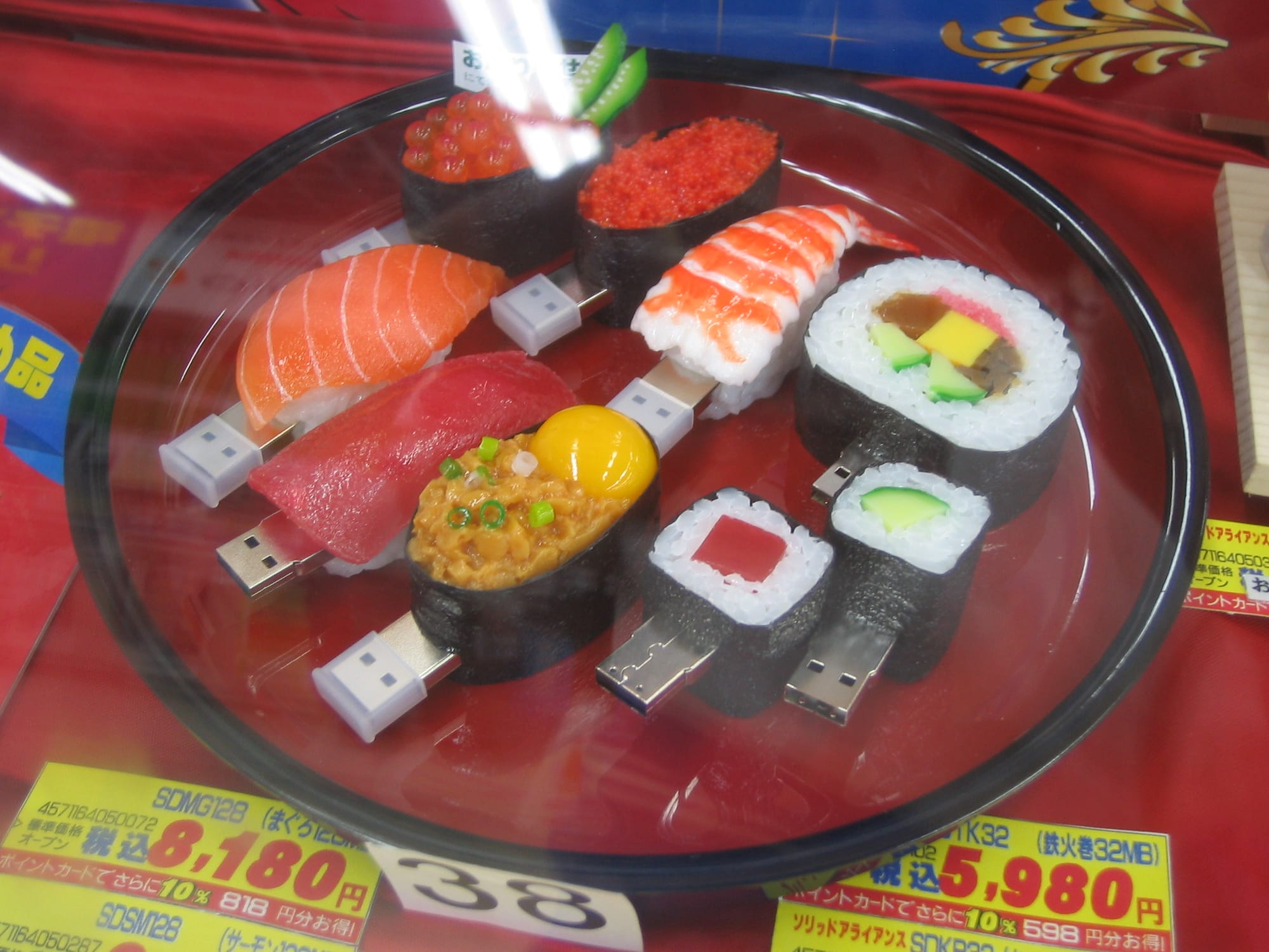 I had Sushi for lunch today (thanks to the guy who prevented me from putting something that wasn’t soy into my soy dish). It was pretty much the same as it was in Australia, although less expensive. Here are some Sushi USB devices (not edible) –