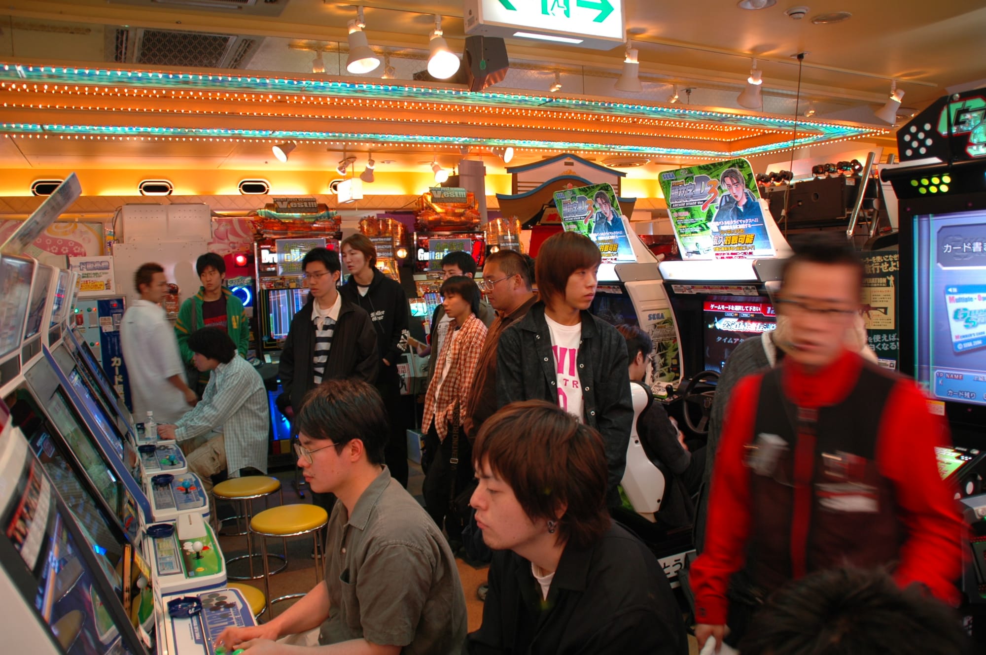 Arcades in Tokyo aren’t the futuristic place with all the new stuff that we don’t get in the western world for another two years that you might expect. They still play Street Fighter 2, fighting games are like spectator sports. There’s typically about 10 people watching two people play on a big screen separate to the main playing screens. Then there’s the gambling rooms, in one arcade there was a huge screen with computer game horse racing and about 30 consoles which people can sit at and bet on virtual horses to win real cash. Then there’s these games where you pretend to play guitar (you have to push three buttons on the neck of the plastic guitar in time with the computer screen) as well as drumming machines and pretend turntables. It makes you wonder why the people playing them don’t actually get into playing guitar/drums/dj mixing for real though. The arcades also seem to be the place to bring your date/girlfriend – “Do you want to go out tonight darling? I’ll fight you on Tekken, best of 5?” must be how it goes.